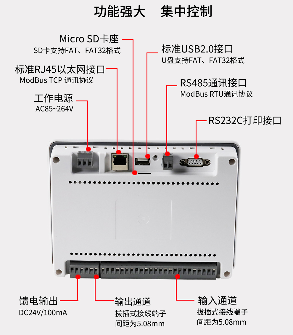 彩色無紙記錄儀/溫度記錄儀采用新型大規模集成電路,對輸入、輸出、電源、信號采取可靠保護和強抗干擾設計。8路萬能信號輸入(可組態選擇輸入:標準電壓、標準電流、熱電偶、熱電阻、頻率、毫伏等)。可帶4路報警輸出,1個饋電輸出,RS485通訊接口,以太網接口,微型打印機接口和USB接口,SD卡插座。