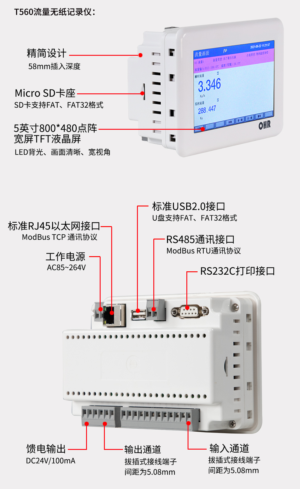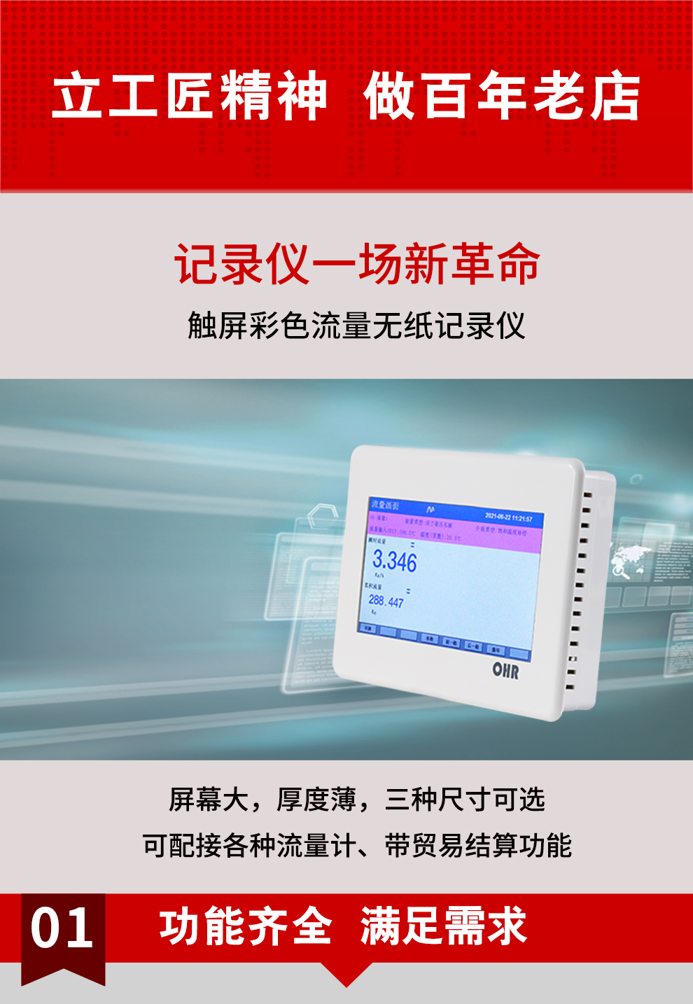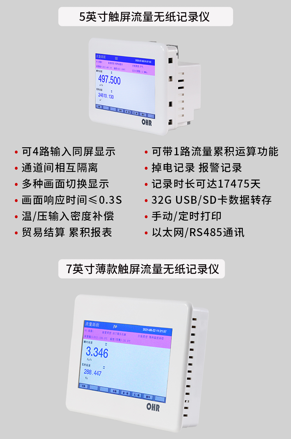 OHR-T系列薄款觸摸彩色流量無(wú)紙記錄儀