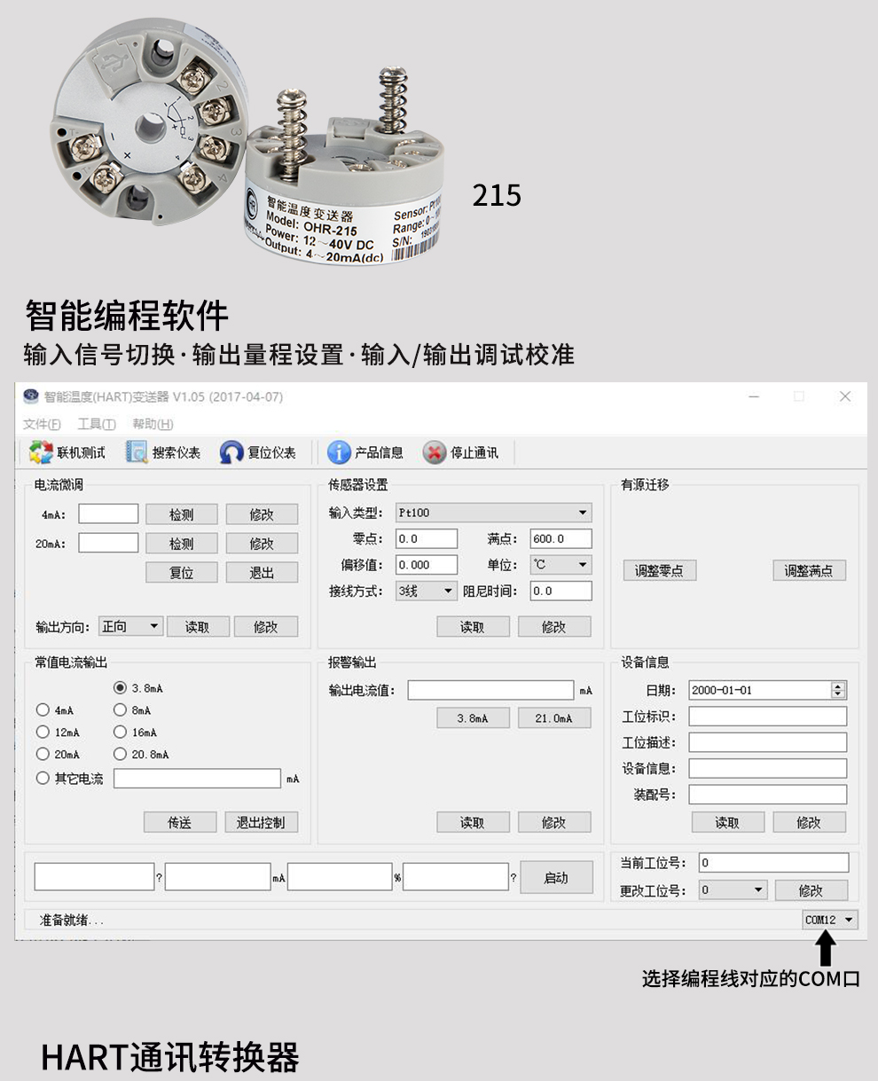 3、OHR-215智能溫度變送器編程助手V1.05 驅動程序(鼠標右鍵另存下載)