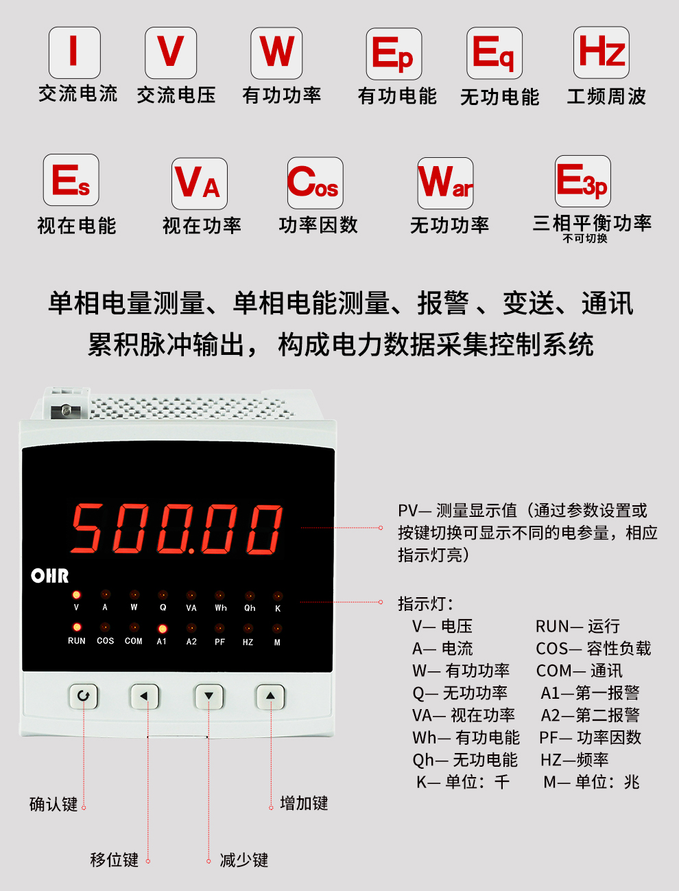 單相電量表為新一代可編程智能儀表,它采用大規(guī)模集成電路,應(yīng)用數(shù)字采樣技術(shù),對(duì)單相電氣線路中的電壓、電流、有功、無(wú)功、功率因素、相位值、頻率、有功電能、無(wú)功電能及視在功率進(jìn)行實(shí)時(shí)測(cè)量與顯示。