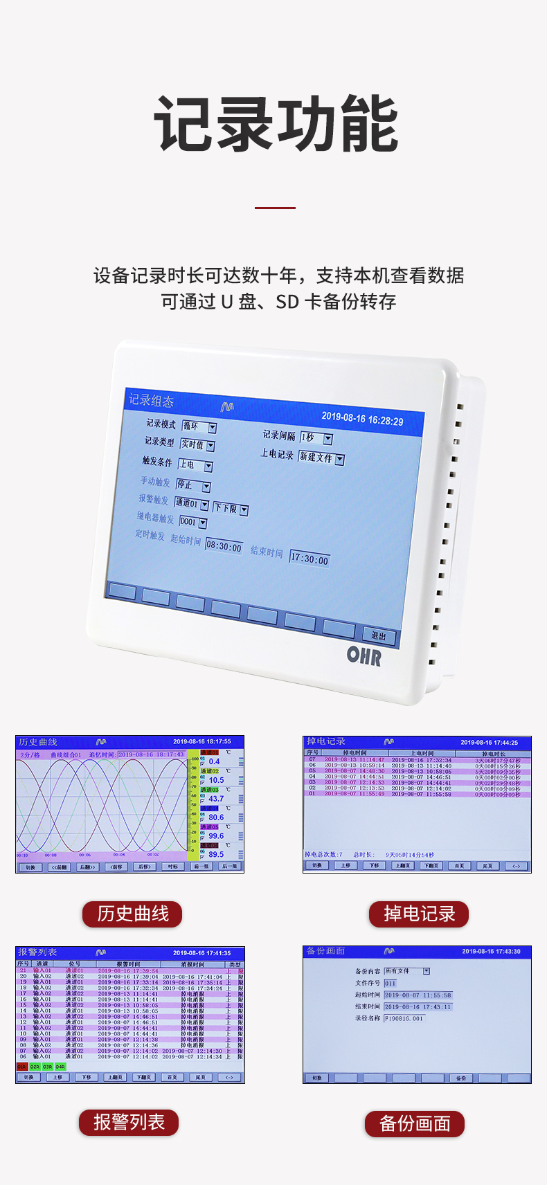 OHR-T系列觸摸超薄無(wú)紙記錄儀