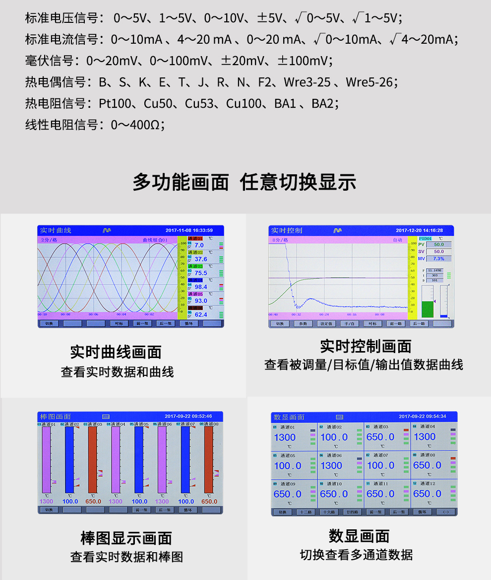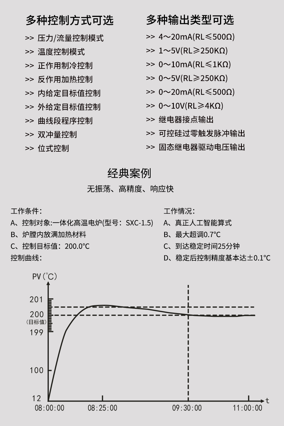 虹潤公司是專業生產溫控器的國家專精特新“小巨人”企業。生產的彩色調節無紙記錄儀,具有8路PID獨立控制,真正人工智能算式,無需人工整定參數,控制精度達士0.1°C,支持以太網/RS485通訊輸出等特點。產品獲得智能化控制器、人工智能調節器及調節方法、模糊PID控制儀及控制方法、一種平板無紙記錄儀、巡回檢測顯示方法及裝置等5項國家發明專利,主持起草物聯網智能記錄儀表通用技術條件、物聯網智能溫度儀表通用技術條件、工業過程測量和控制系統用智能調節器等3項國家標準,通信系統多通道數據采集控制終端規范軍用標準,以及空間數據與信息數據傳輸系統等2項航天標準。參與國際5G標準制定,取得液晶數據采集無紙記錄儀等4項相關軟件著作權。產品廣泛應用于電石化、工業爐、試驗設備、注塑機械、包裝機械等需要對現場溫度進行監測控制的行業。