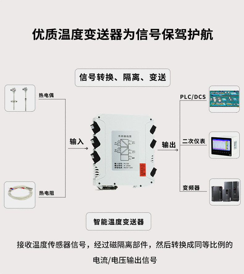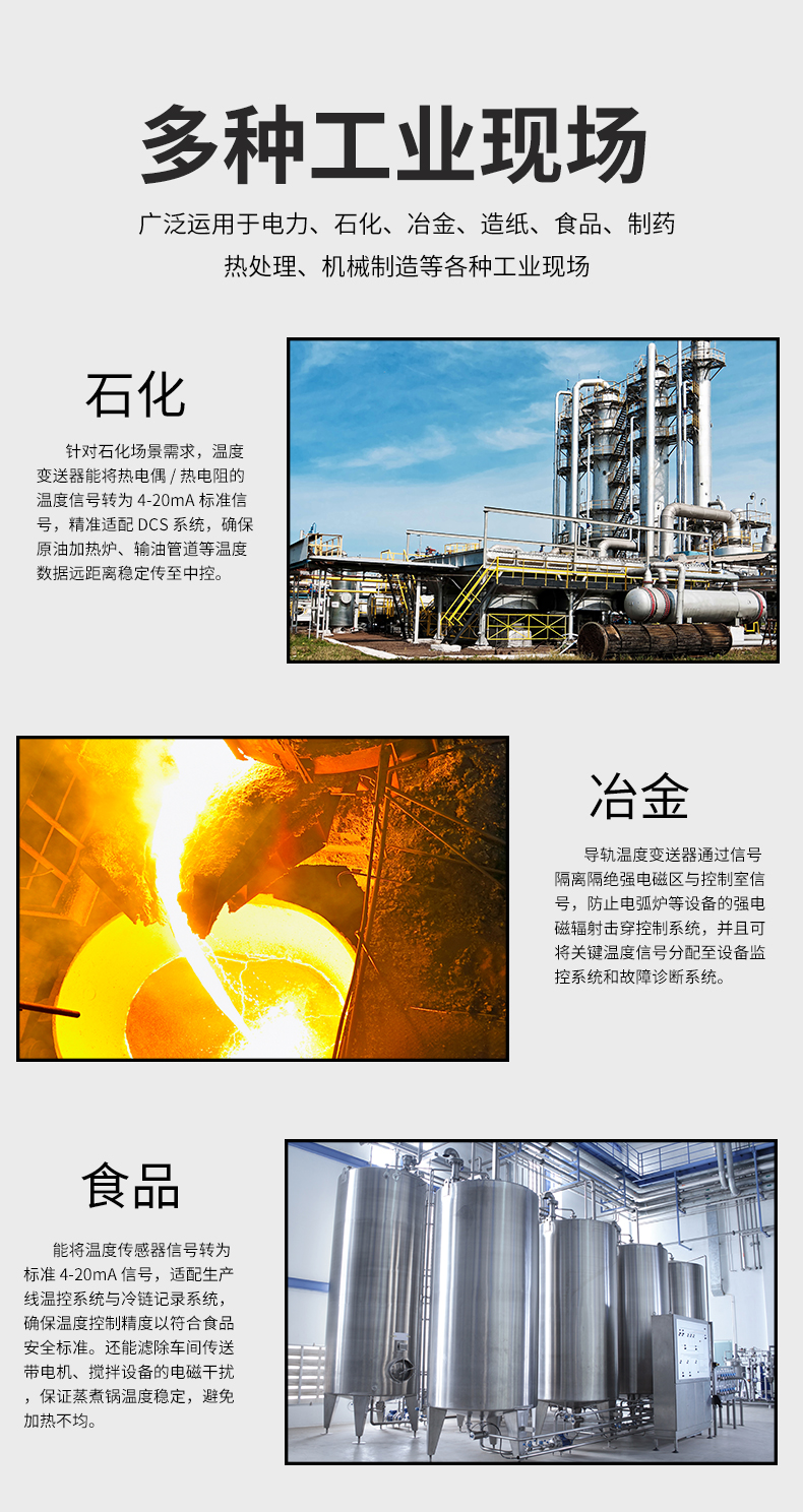 虹潤公司是專業生產溫度變送器的國家專精特新“小巨人”企業。生產的溫度變送器,具有采用磁隔離技術,配套編程器可修改參數,抗干擾能力強,穩定性好,帶RS485或HART通訊等特點。該產品不僅通過HART基金會認證、德國萊茵 CE 認證與 SIL 功能安全認證,還獲得具備減震抗干擾能力的溫度變送器、信號隔離器、一種二端子模塊、無源信號隔離器等4項國家發明專利,主持起草物聯網智能溫度儀表、現場設備工具(FDT)接口規范、工業過程測量和控制系統用溫度變送器等3項國家標準,以及通信系統多通道數據采集控制終端規范軍用標準,參與國際5G標準制定,取得溫度變送器等5項相關軟件著作權。產品廣泛應用于石油、電力、化工,冶金、制藥、紡織、橡膠制造等工業領域現場自動化測溫過程。