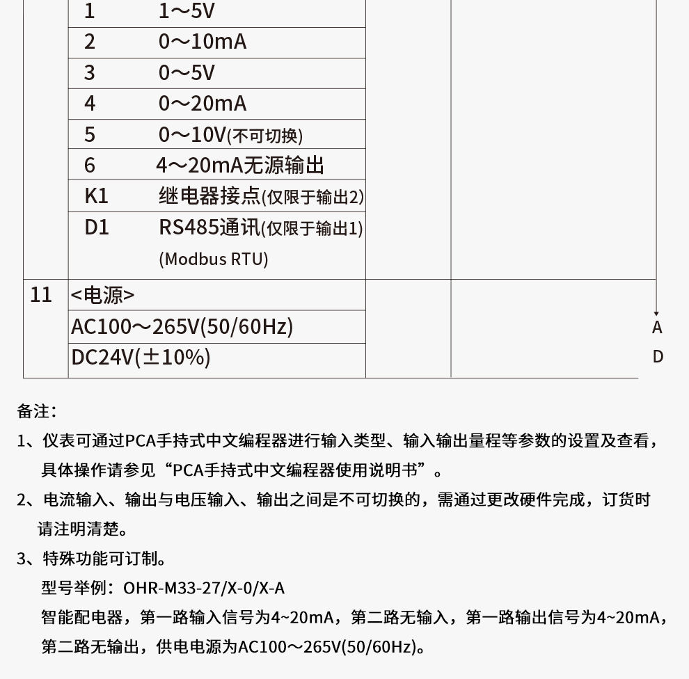 OHR-M33系列智能配電器給二、三線制變送器提供隔離的電源電壓,將變送器產生的直流電壓或電流信號,經本隔離器轉換成所需的輸出信號至控制系統。