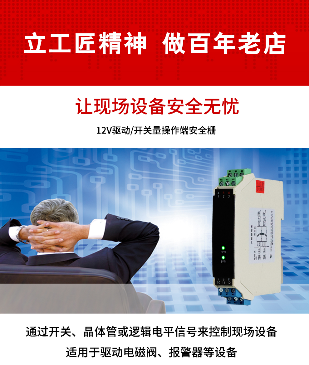 虹潤公司是專業(yè)生產(chǎn)隔離器的國家專精特新“小巨人”企業(yè)。生產(chǎn)的隔離式操作端安全柵涵蓋信號(hào)電壓輸入、電流輸入、開關(guān)量輸入等多種產(chǎn)品類型。產(chǎn)品獲得具備減震抗干擾能力的溫度變送器、信號(hào)隔離器、一種二端子模塊、無源信號(hào)隔離器等4項(xiàng)國家發(fā)明專利,主持起草物聯(lián)網(wǎng)智能溫度儀表、現(xiàn)場設(shè)備工具(FDT)接口規(guī)范、工業(yè)過程測量和控制系統(tǒng)用溫度變送器等3項(xiàng)國家標(biāo)準(zhǔn),以及通信系統(tǒng)多通道數(shù)據(jù)采集控制終端規(guī)范軍用標(biāo)準(zhǔn)。參與國際5G標(biāo)準(zhǔn)制定,取得智能隔離式安全柵等4項(xiàng)相關(guān)軟件著作權(quán)。產(chǎn)品廣泛應(yīng)用于石油、電力、化工,冶金、智能制造、污水處理等諸多行業(yè)。